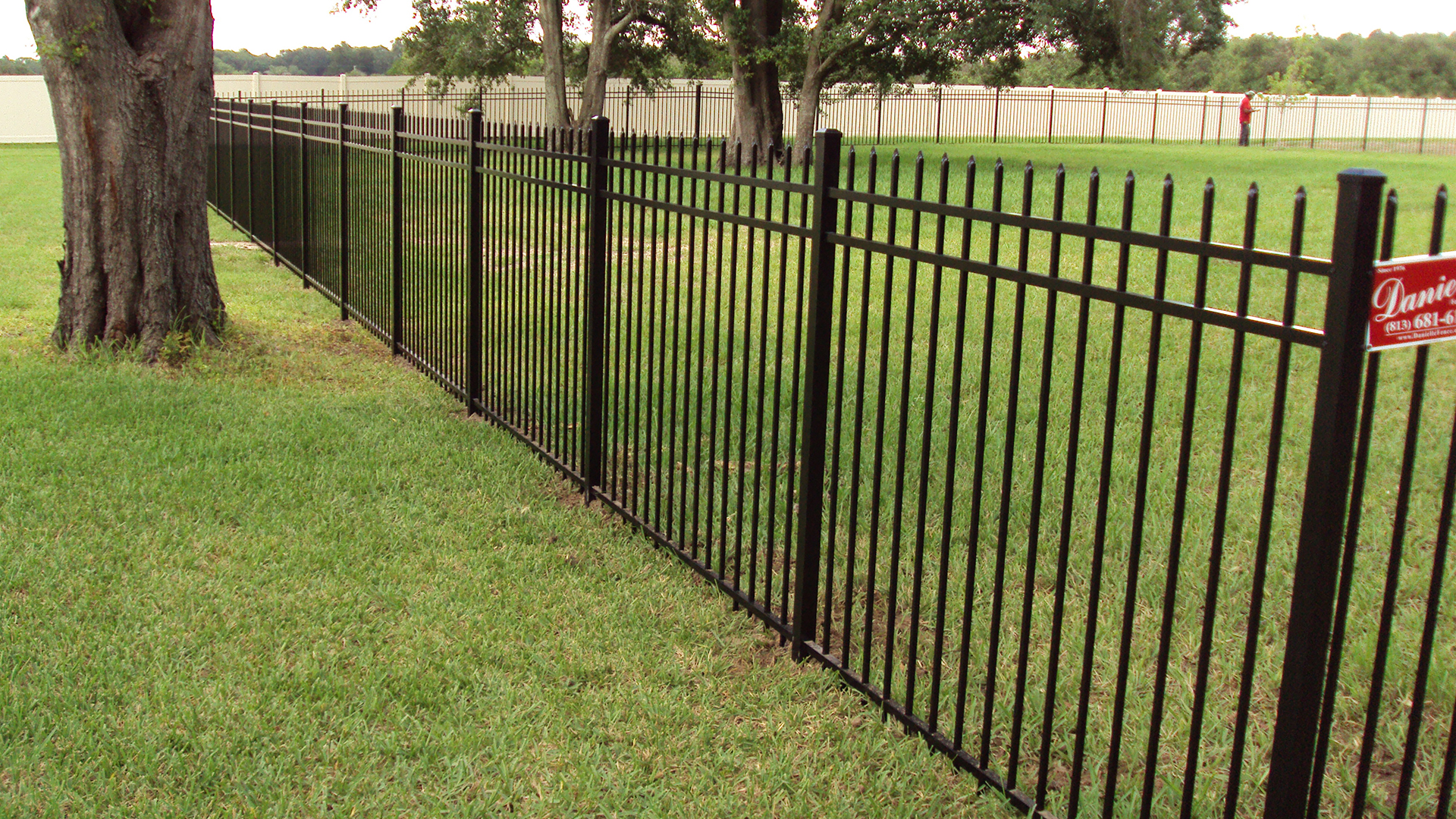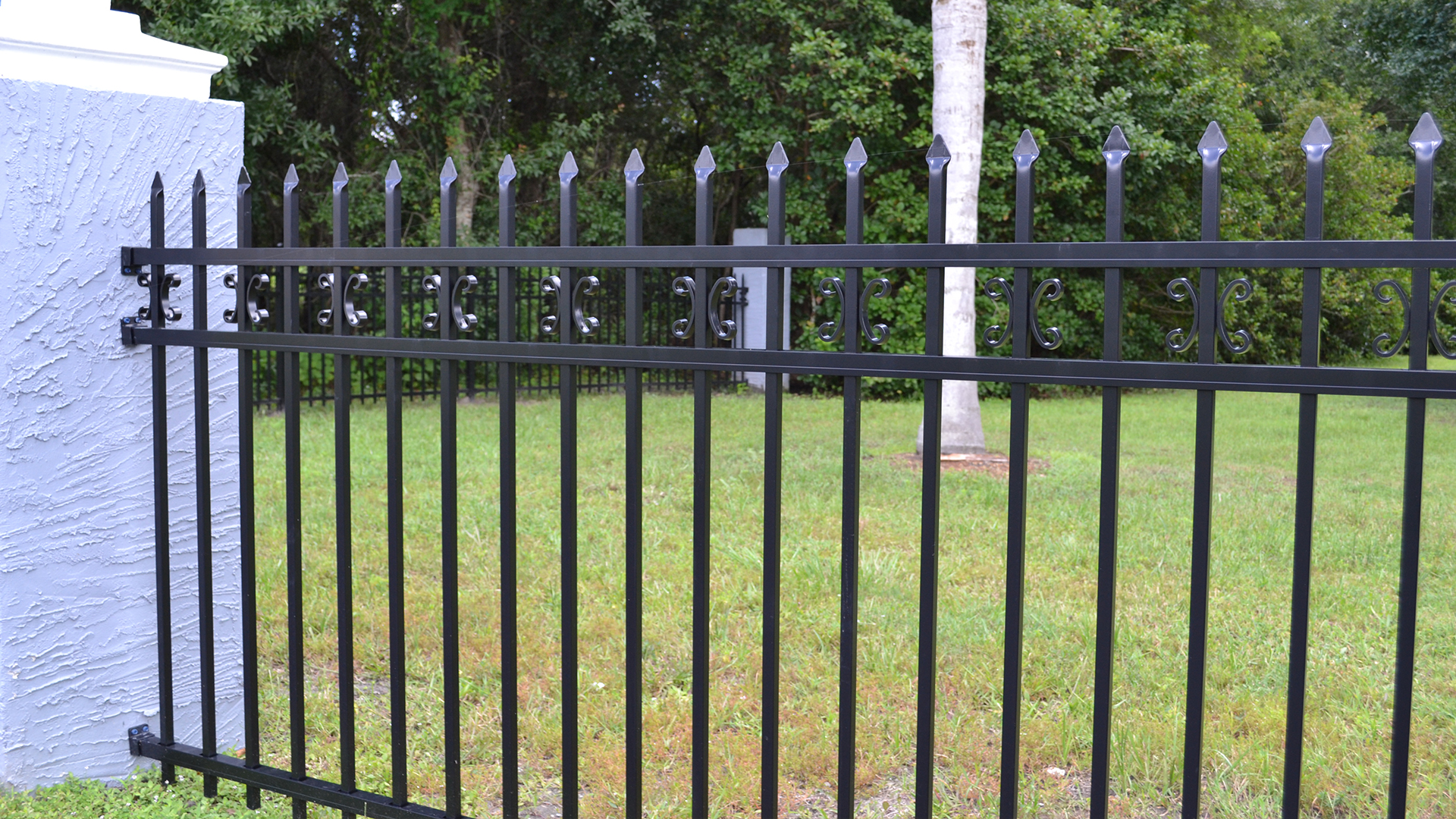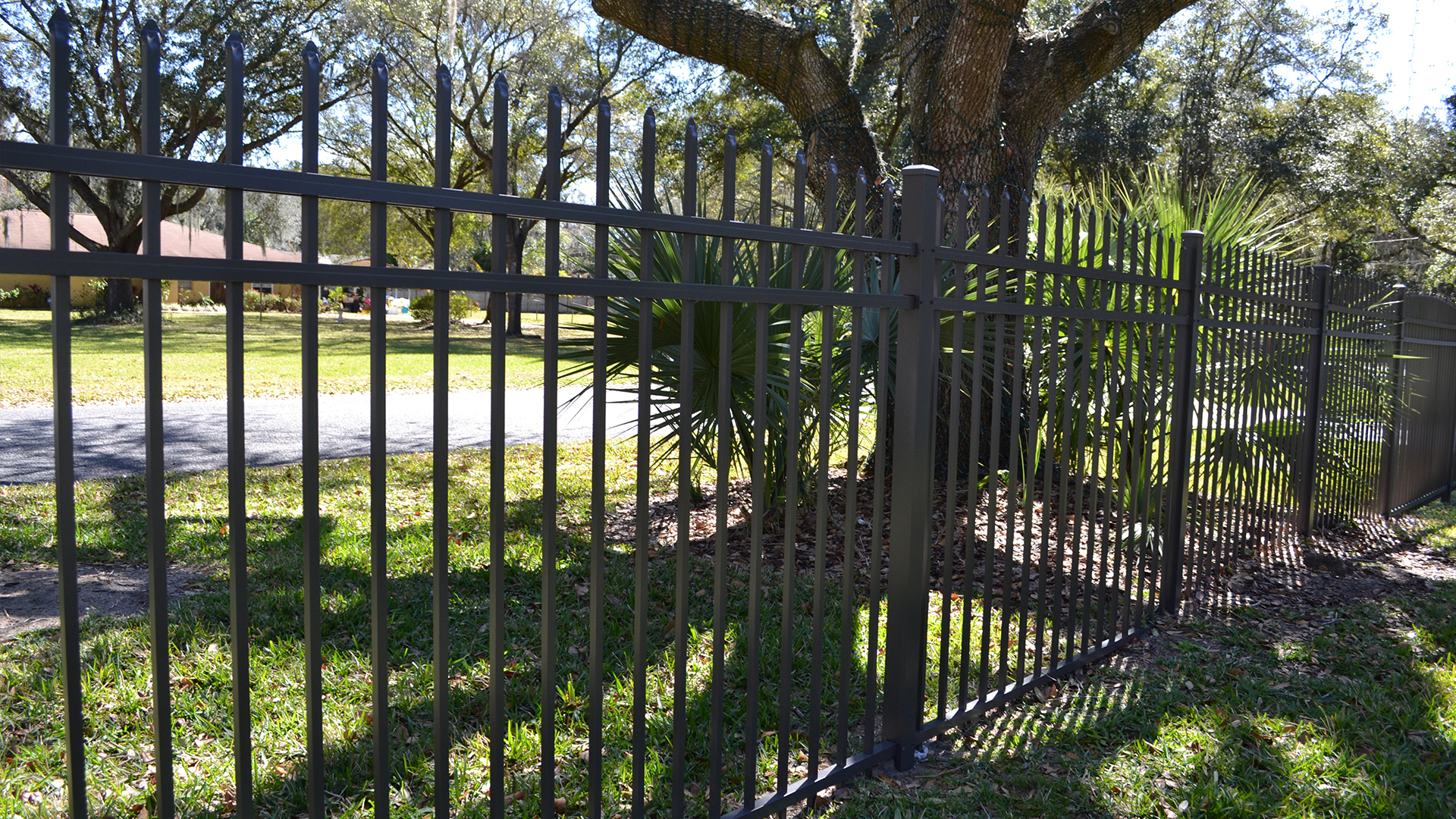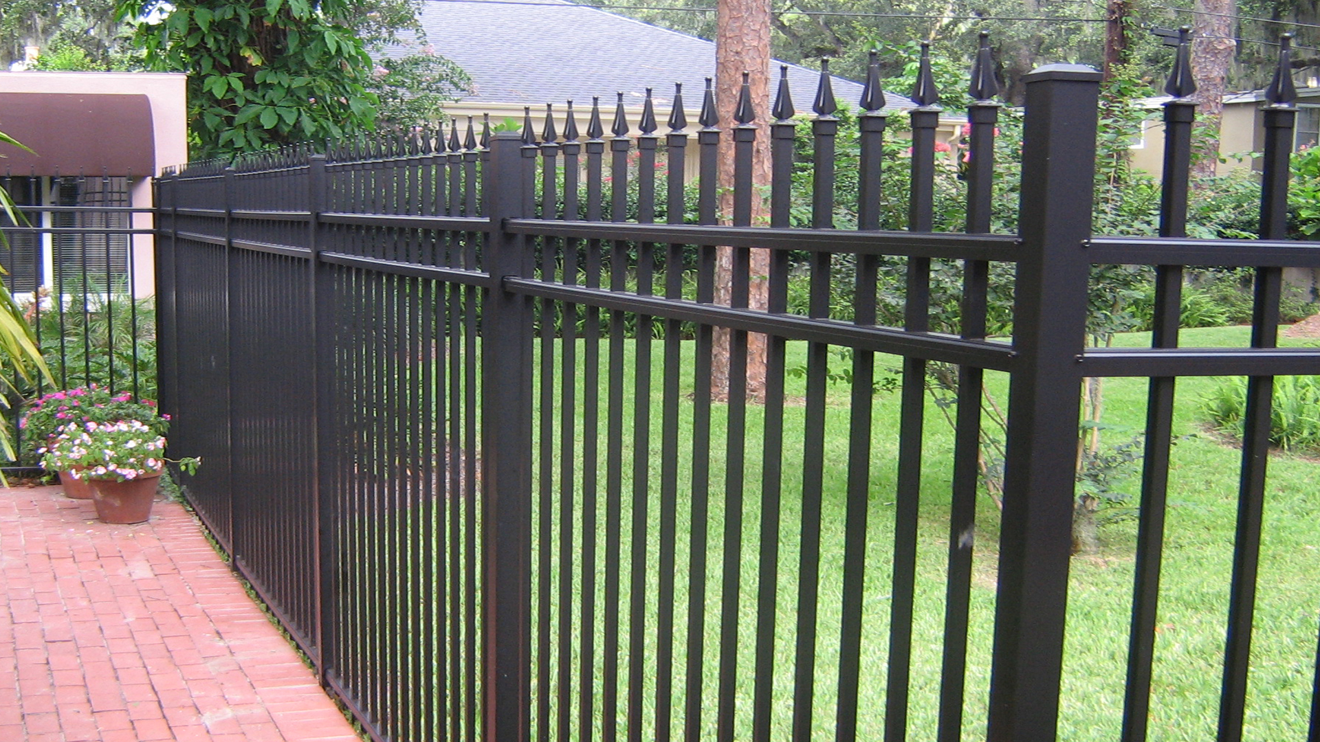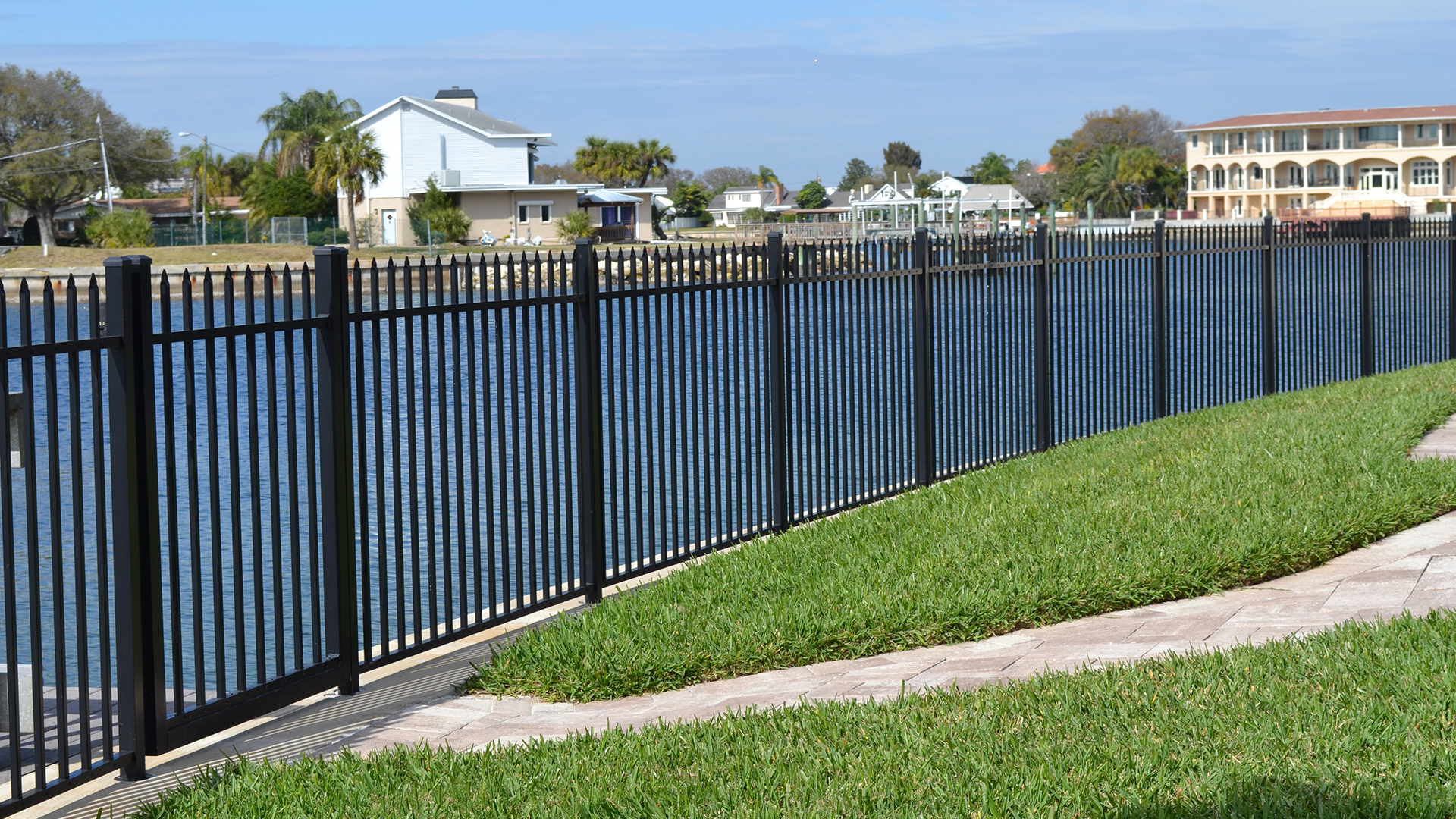 The Bentley Aluminum Fence has pressed spear pickets, giving it a classic wrought iron design without the costly and time-consuming maintenance required of other fencing materials. This aluminum fence will enhance your home's outdoor living space while also providing boundary definition. Available with both Double and Puppy Picket options. The Bentley Aluminum Fence is also available in commercial and industrial grades.