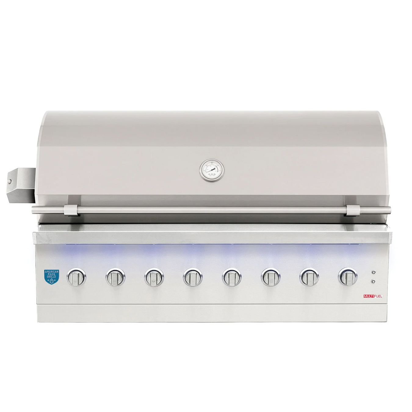 Included Items: Rotisserie Kit; Drop-In Infrared Sear Burner; Stainless Steel Griddle; Fuel Kit (Wood & Charcoal); Deluxe Vinyl Grill Cover; Grate Lifting Tools; Leather Glove Set; Care Kit