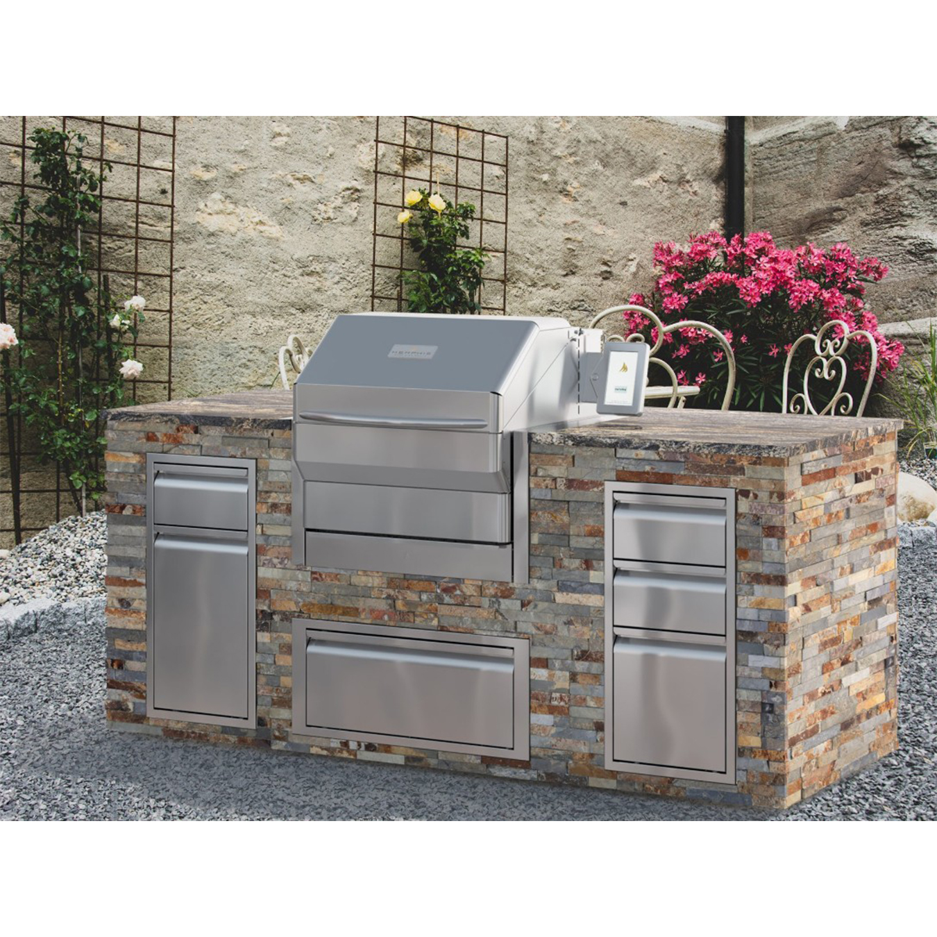 Double-walled construction and made with the highest quality stainless steel, the Memphis Pro Built-in ITC3 pellet grill combines the very best parts of a kitchen oven, a real wood fire, a BBQ gas grill, and a smoker. It’s the perfect addition to any outdoor kitchen. Also available in a Cart model.