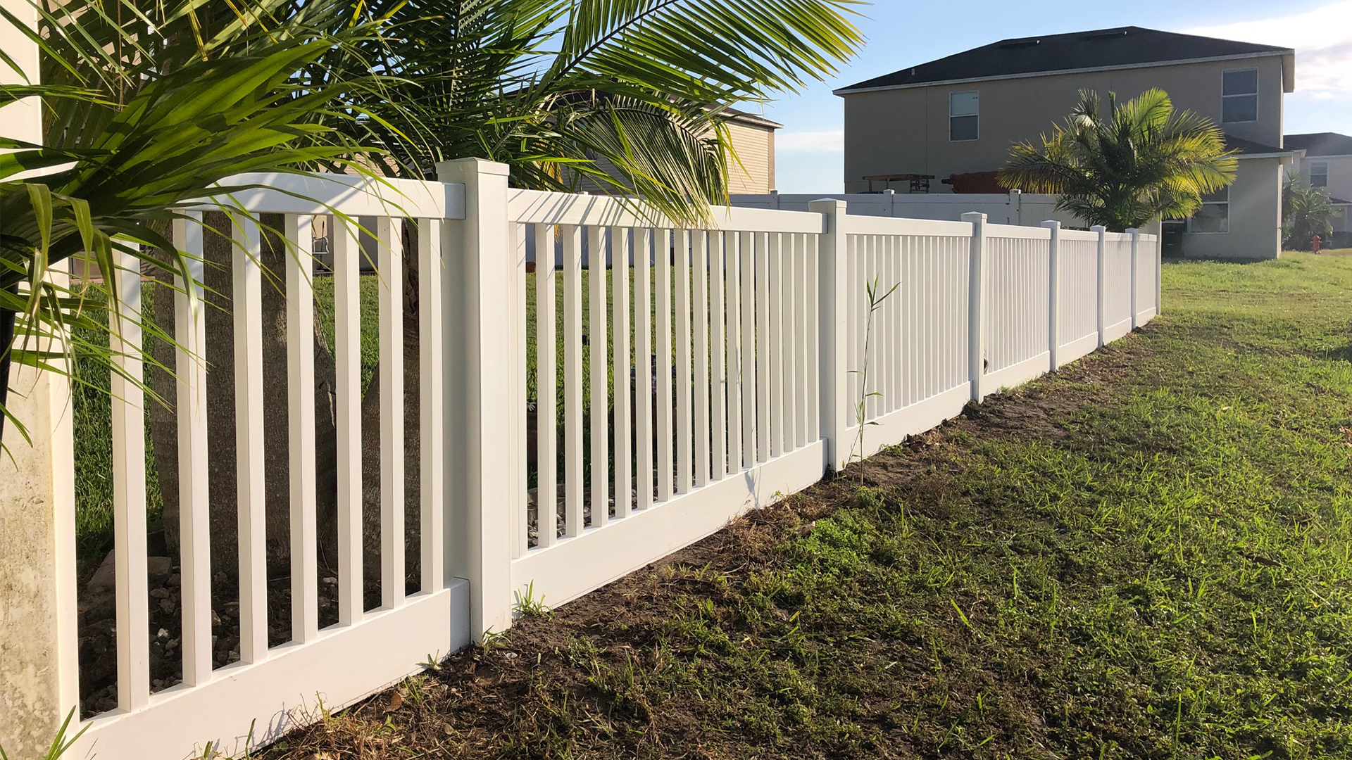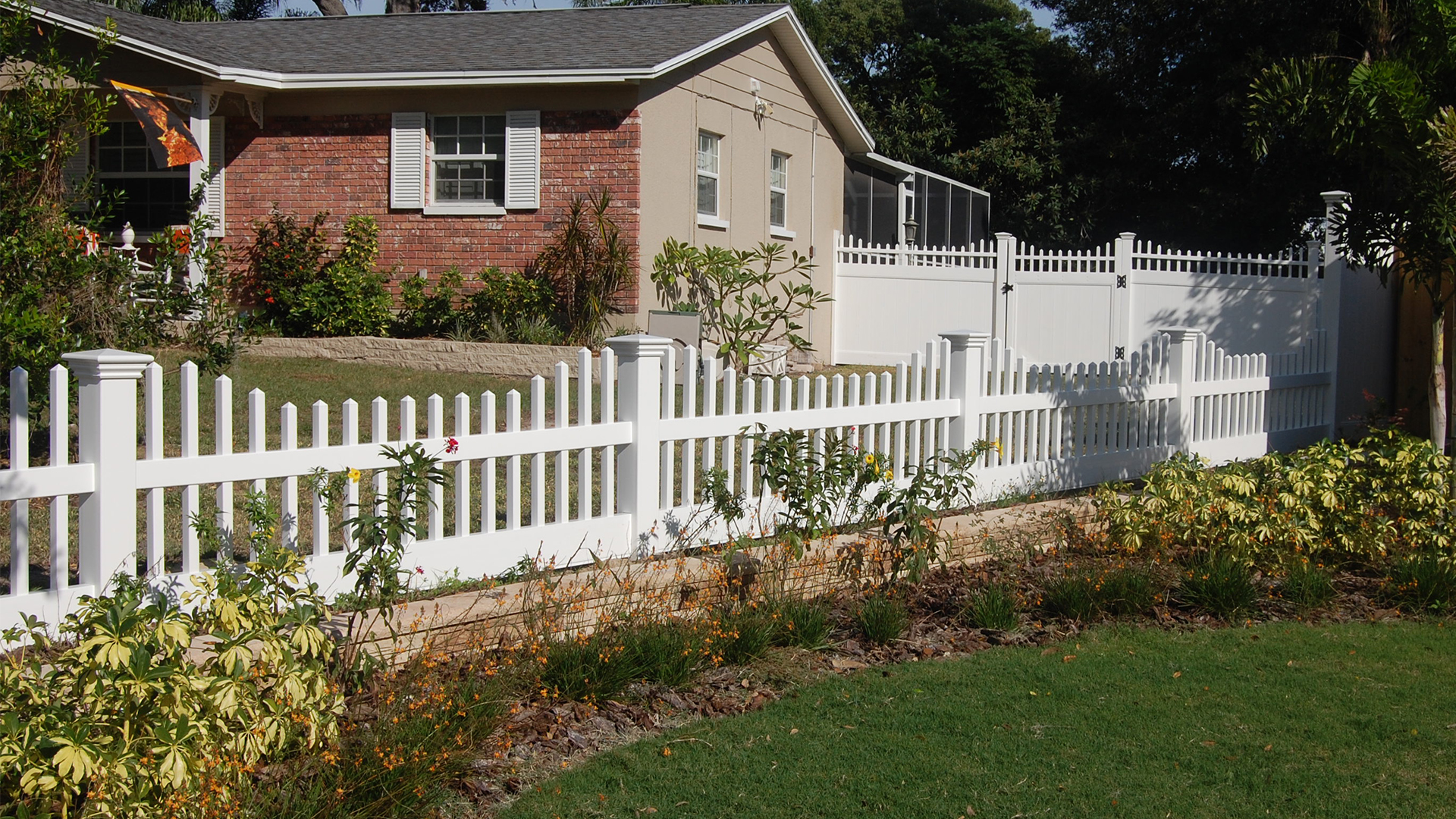 The Sacramento Vinyl Fence combines the look of a traditional picket fence with a contemporary style. The 1-1/2in. square pickets give the Sacramento Vinyl Fence a very clean and attractive look. You can also customize this fence with a convex or concave top, providing an elegant flair to make your outdoor space look even more beautiful. View our portfolio of projects to see the different style options available.
